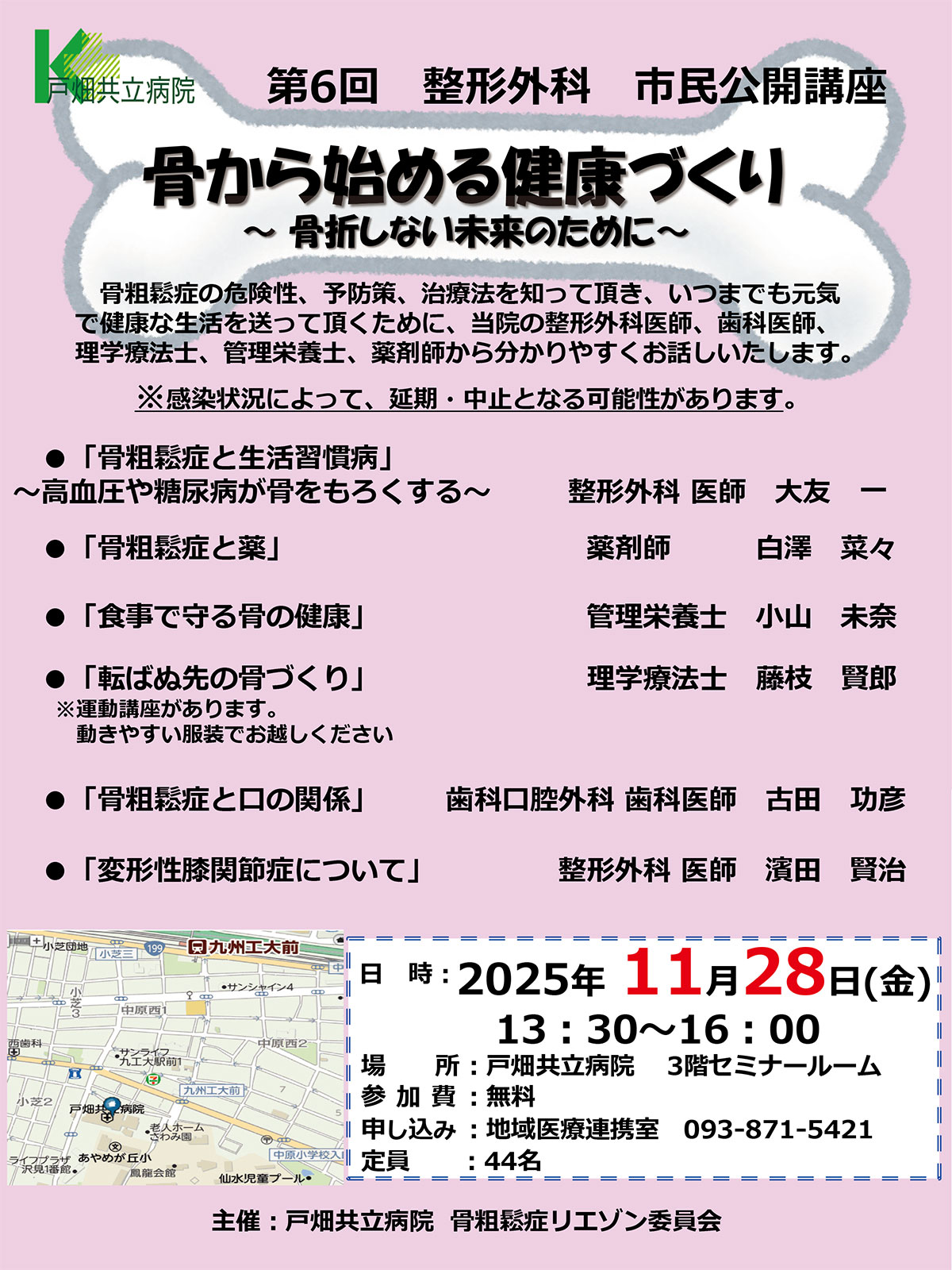 戸畑共立病院セミナールームにて市民公開講座を開催いたします。