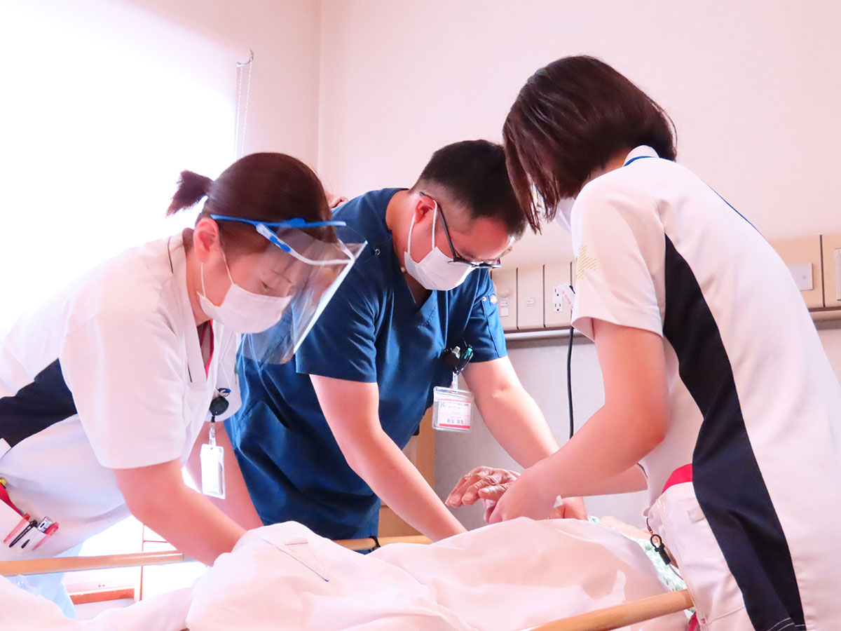 正面玄関では、短時間で状態を観察・察知し適切な診療に繋げるため、看護師がトリアージを行っております。また、専門の診療科において、より充実した看護が提供できるよう自己研鑽し、幅広い分野の資格を持った看護師も在籍しています。フットケアやストーマケア、骨粗鬆症リエゾン看護師、糖尿病療養指導士の介入など、患者さんのニーズに対応しております。